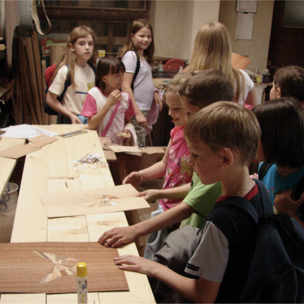 Delavnice so namenjene otrokom, mladostnikom in odraslim, kjer se lahko preizkusijo v procesu ustvarjanja in bogatijo veščine: natančnost, potrpežljivost, zbranost.