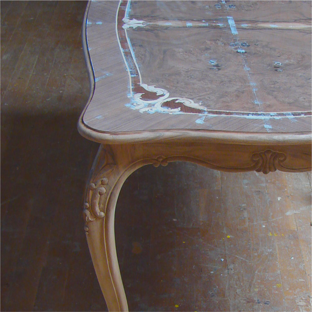 Je kot dekorativni element izdelan oz. sestavljen iz raznovrstnih lesenih delov enake debeline v celoto in prilepljeni na lesen nosilec. Poleg dekorativnih elementov na pohištvu najdemo intarzije v večjih kompozicijah in površinah, kot so na primer intarzirani parketi ali upodobitev tihožitja, krajiine…
